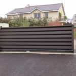 - Portail coulissant imitant un portail battant grâce aux 4 montants présents jusqu’en partie basse du portail.