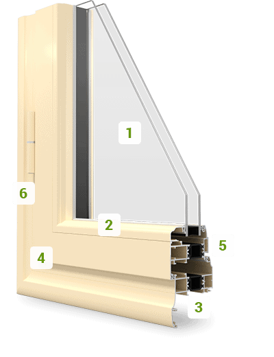 - Rupture de pont thermique grâce à des barrettes en PVC multichambres dans les cadres dormants et ouvrants